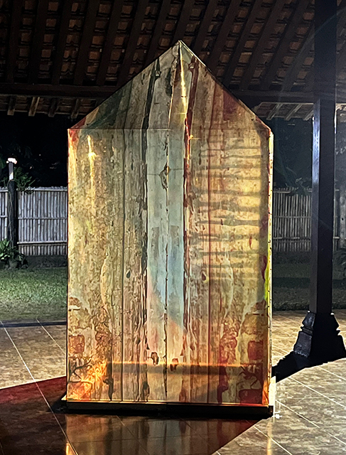 8 images UV-printed on OHP film, timber, screws, metallic brackets, staples, neodymium magnets