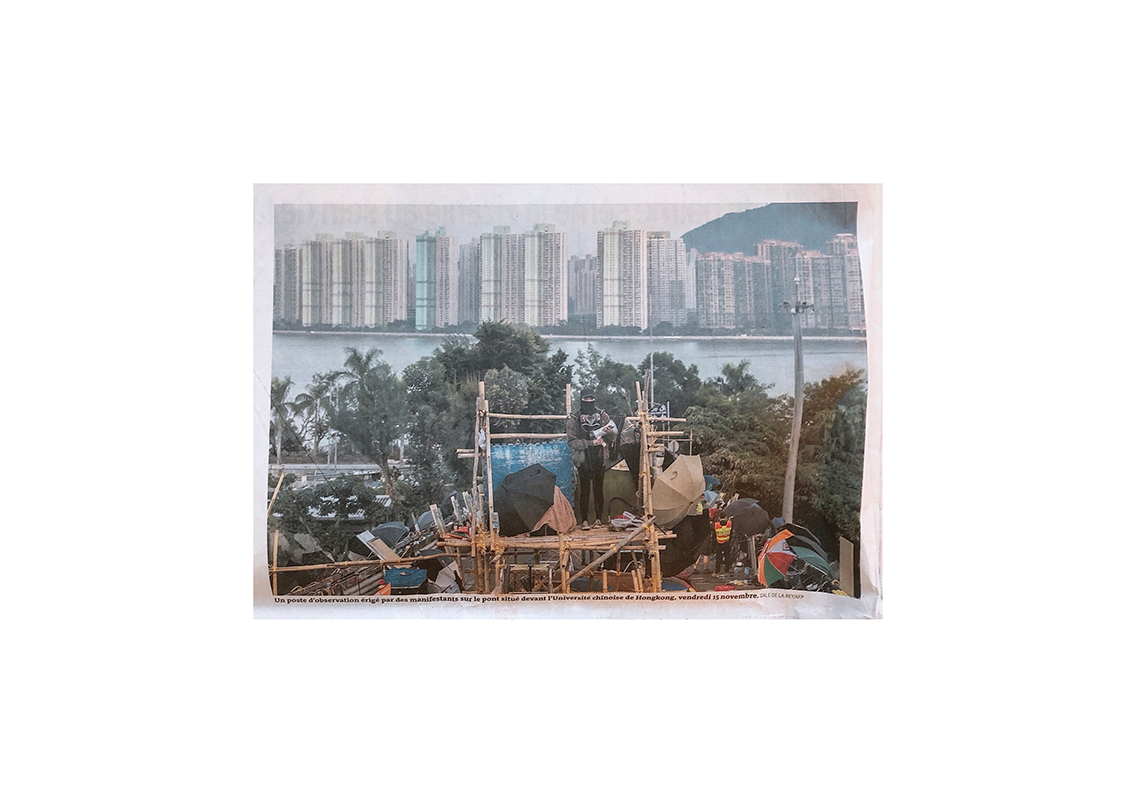 Can we be united together through photographs/images ? I am delighted to be part of ”The Scrap : HAPPY TOGETHER”, commiserating with the purpose of the Scrap organization team which supports Hong Kong protesters and citizen. These five images presented at this exhibition/event are the result of creation after a chain of process of the photographic act. Firstly, I have started to research photographs of scene in Hong Kong on Paris news and publications. Secondly, I have explored and utilized these photographs by collecting, appropriating, transforming, shooting and editing. Finally, I have recreated these images into a different medium. In this way, the digital photography as a trace material can be a material for an artwork, record the artwork, from it, makes a photo that itself is an artwork. Reality are not conducive to imagination, but art induces imagination. For me, the slightly curved outer angle, the subtle volume that is by the fold and winkle and upside-down images of images, are not simply visual, but multi-sensory, like a struggle of breathless resistance. Image, photography, art, people, life, on vague boundaries, HAPPY TOGETHER. 12/12/19, PARIS. Sunyoung PARK